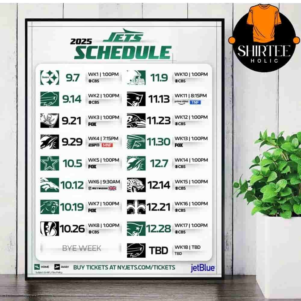 New York Jets Official 2025 NFL Schedule Season 2025 2026 Wall Decor Poster Canvas Shirteeholic