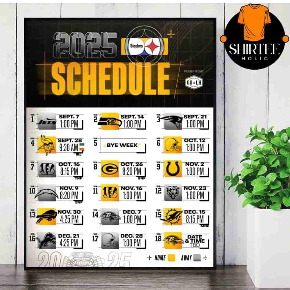 Pittsburgh Steelers Official 2025 NFL Schedule Season 2025 2026 Wall Decor Poster Canvas Shirteeholic