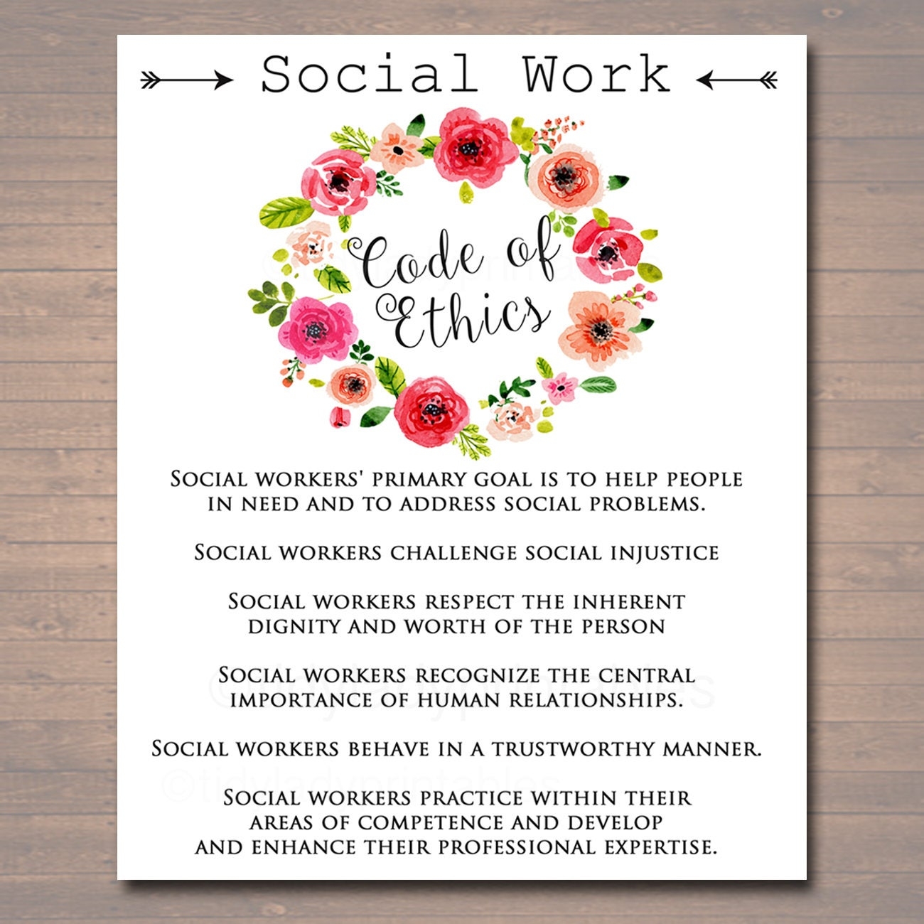 Social Worker Code Of Ethics Print Medical Social Worker Case Manager Social Work Gift Social Worker Poster INSTANT DOWNLOAD Etsy