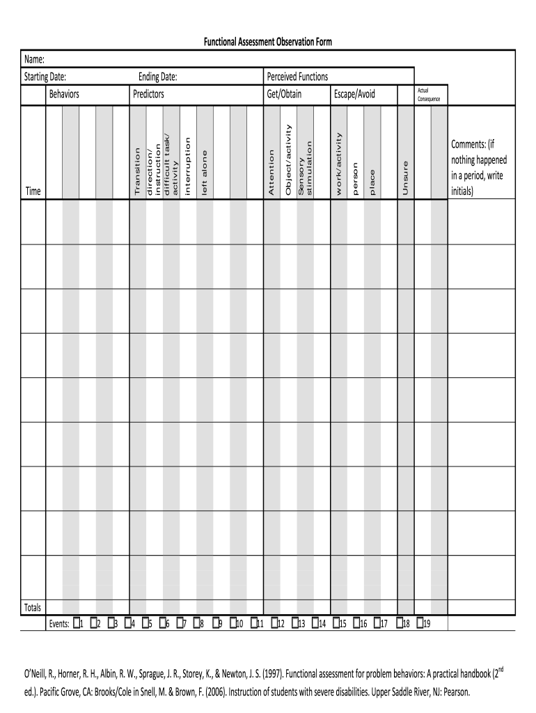 Printable Functional Assessment Observation Forms