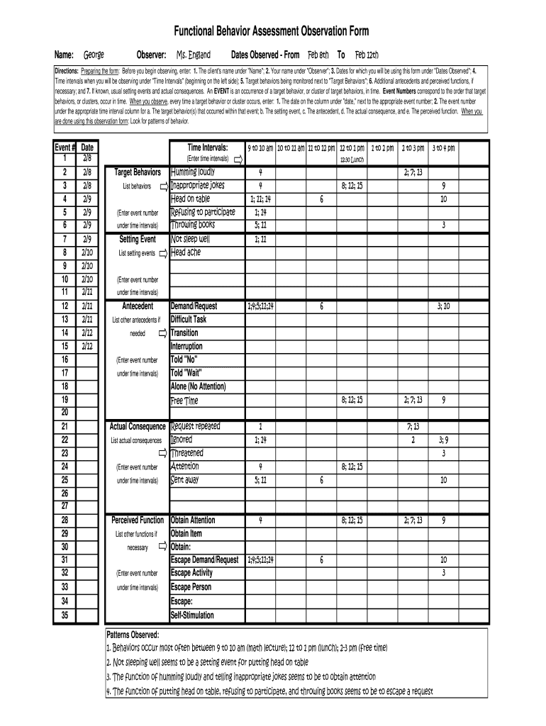 Functional Behavior Assessment Template Fill Online Printable Fillable Blank PdfFiller