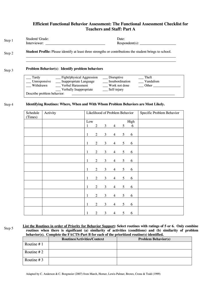 Functional Behavior Assessment Checklist Fill Online Printable Fillable Blank PdfFiller