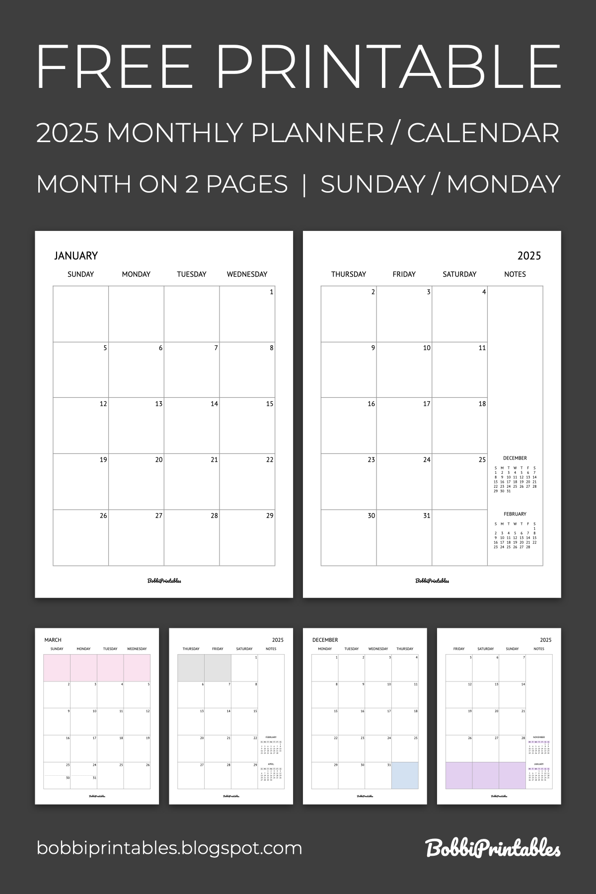 Free Printable 2 Page Blank Monthly Calendar 2025