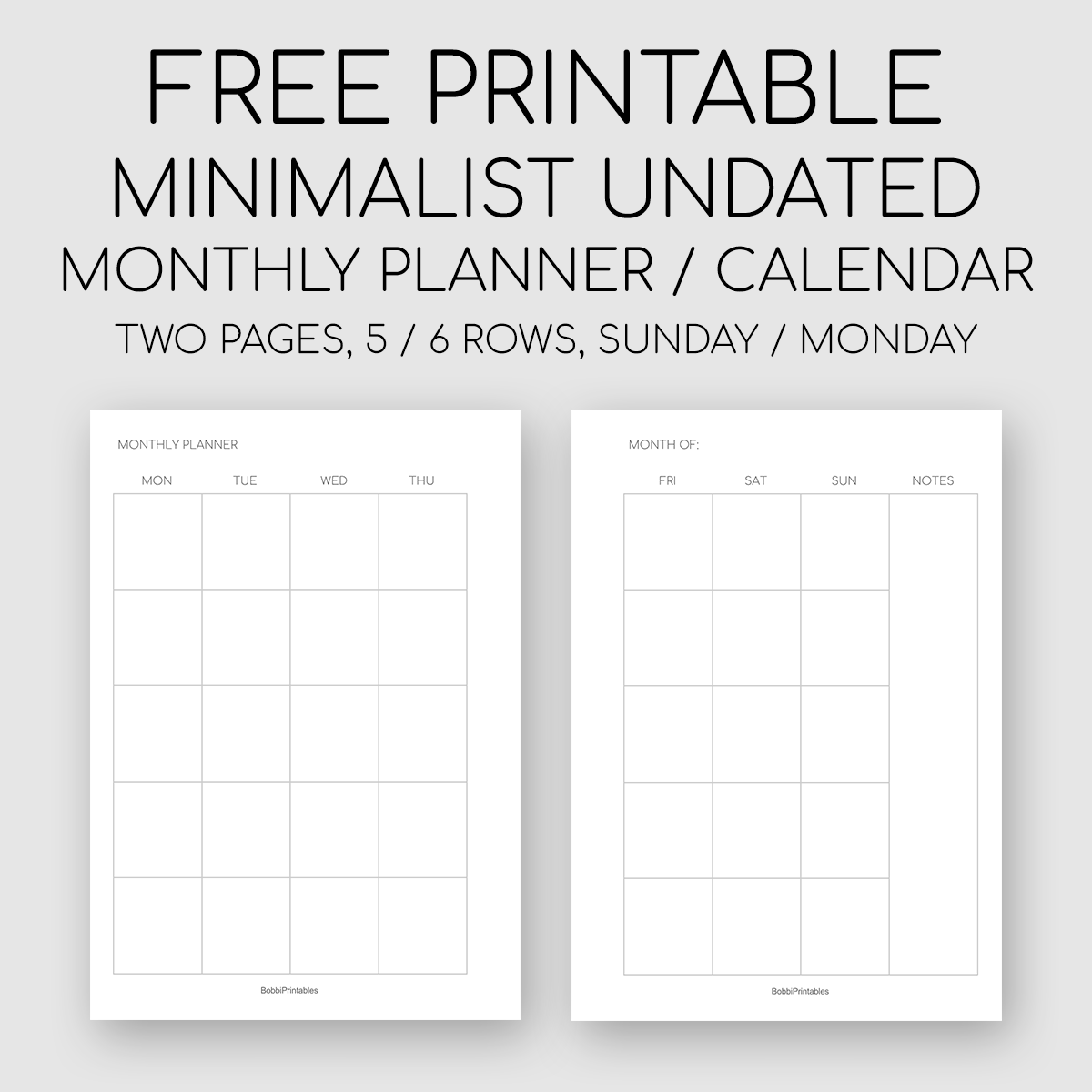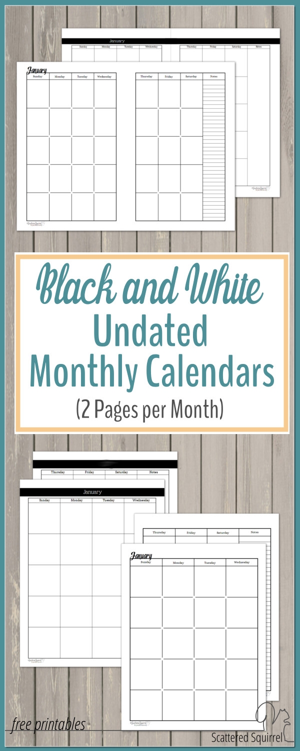 Free Black And White Undated Two Page Per Month Calendar Printables Scattered Squirrel