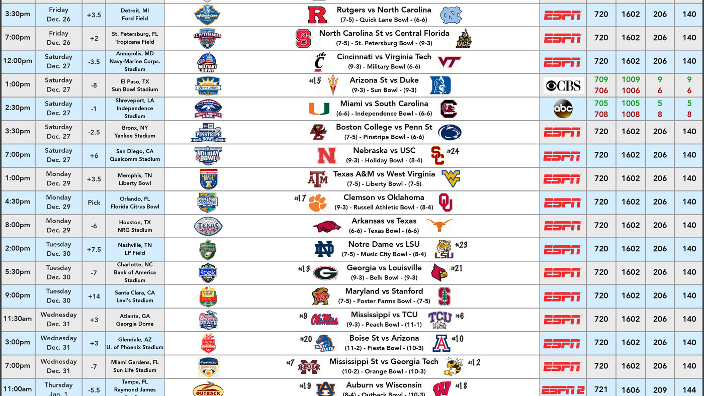 Complete Watch Guide For All 39 Bowl Games Cowboys Ride For Free