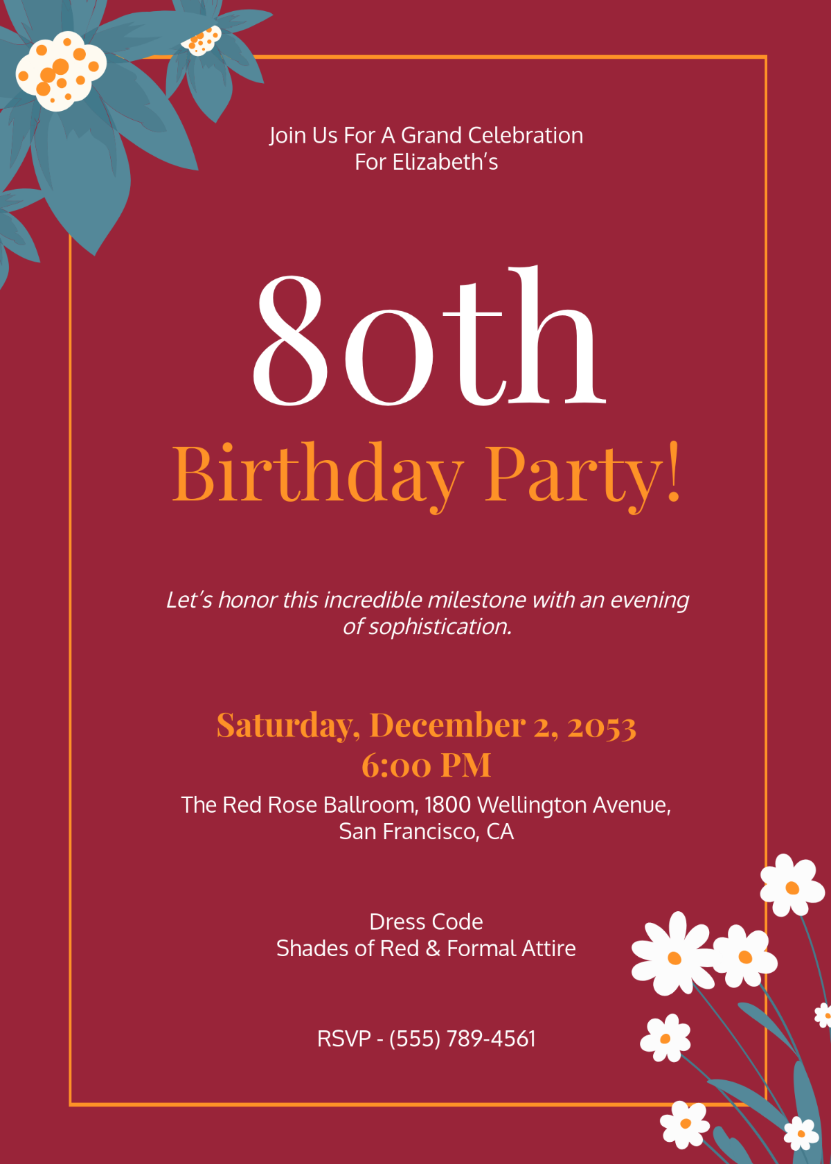 Free Printable Custom 80th Birthday Invitation Templates Canva