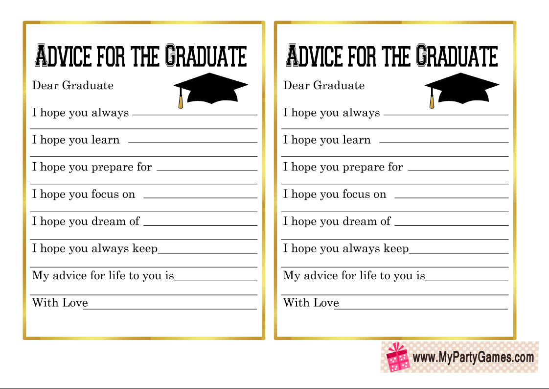 Free Printable Graduation Advice Cards For Graduation Parties