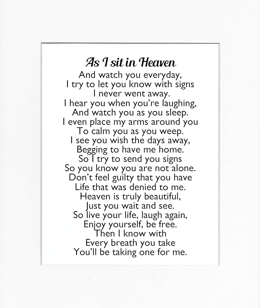 Amazon 8×10 UNFRAMED PRINT As I Sit In Heaven Poem Print Sign Memorial Remembrance In Loving Memory Wall D cor White Handmade Products