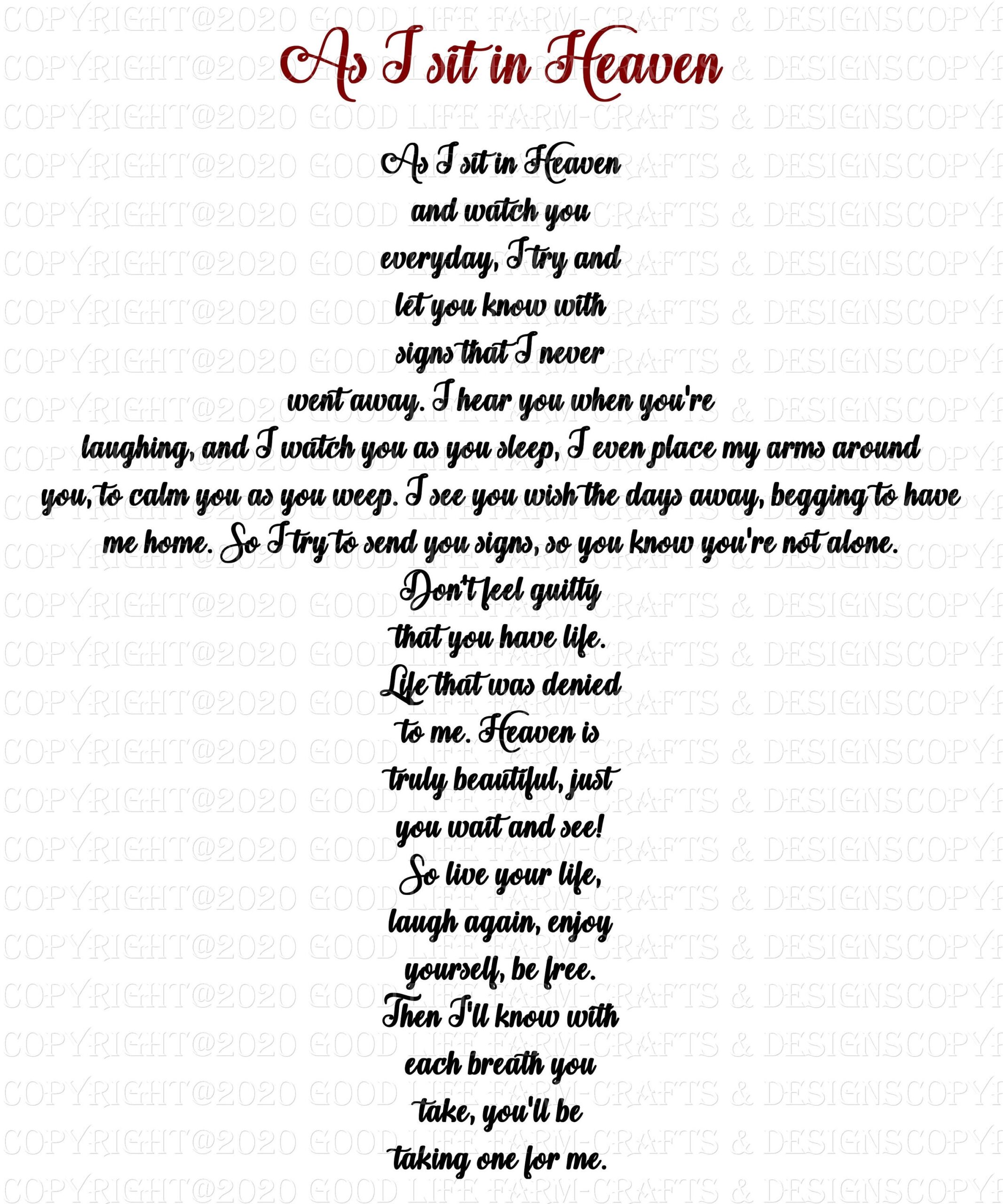The As I Sit In Heaven Printable is not just a piece of paper; it’s a symbol of hope and connection to the ones we miss. Its words resonate deeply, bringing a sense of peace and healing to those who read them.
