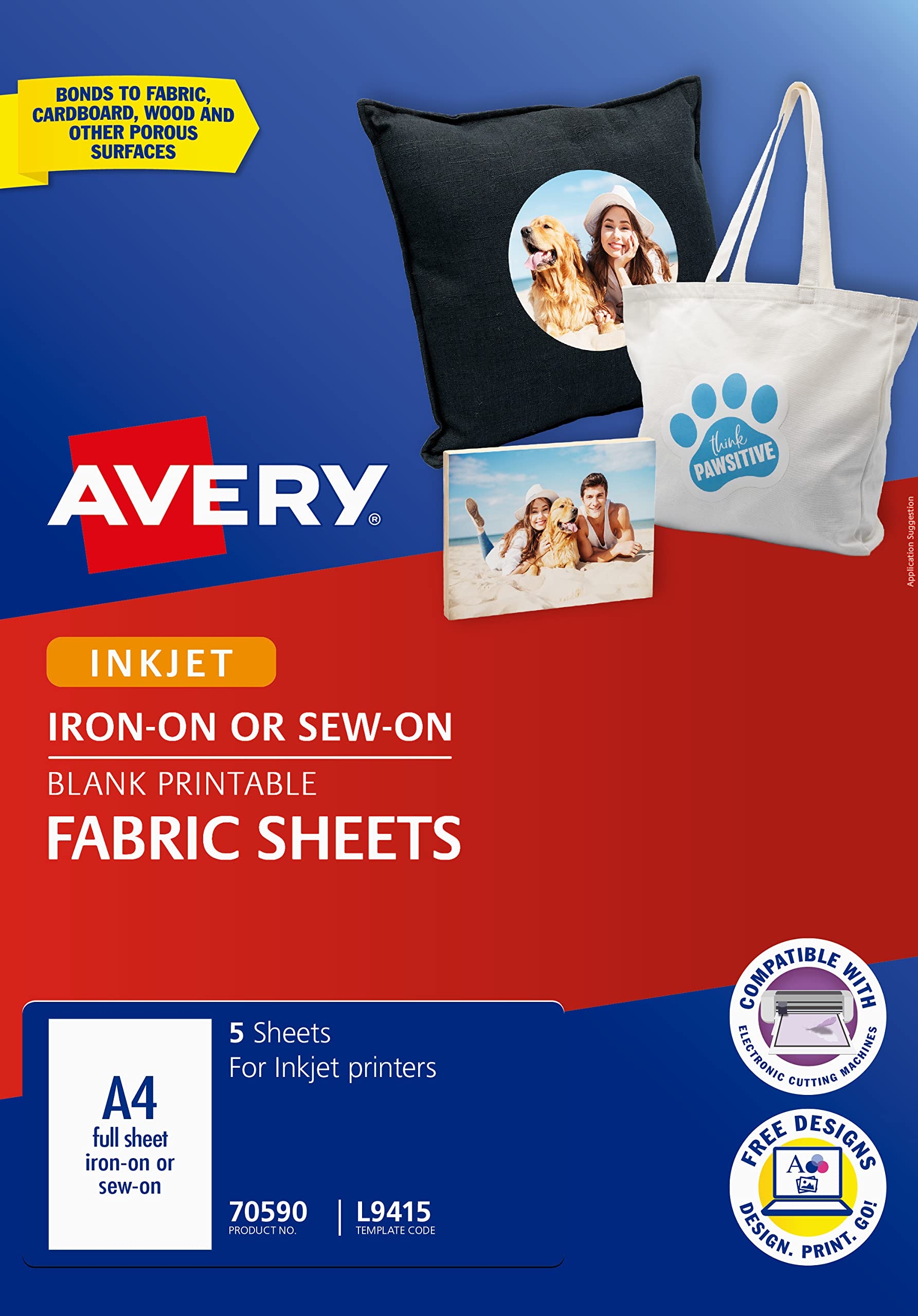Avery Iron Or Sew On A4 Printable Fabric Sheets For Inkjet Printers Blank 5 Sheets 70590 Amazon au Home