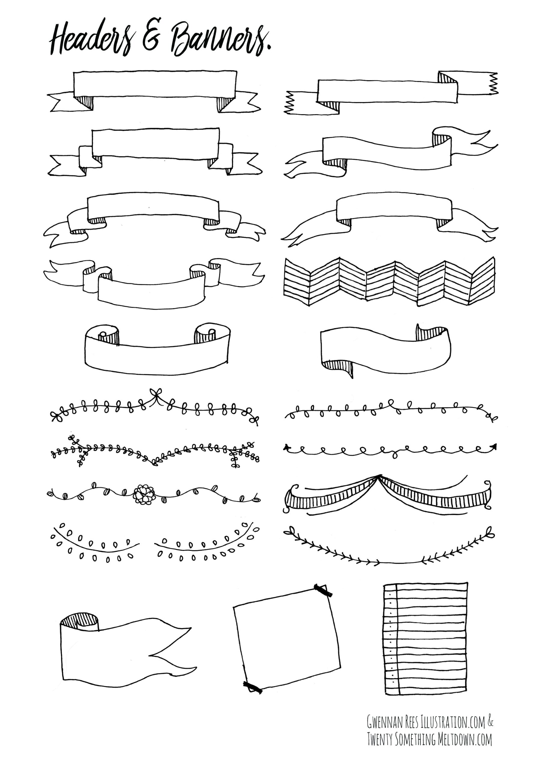 Simply download and print out the banners and headers that catch your eye, then cut them out and paste them into your bullet journal. It’s a quick and easy way to add some personality to your pages without having to spend hours drawing and designing them yourself.