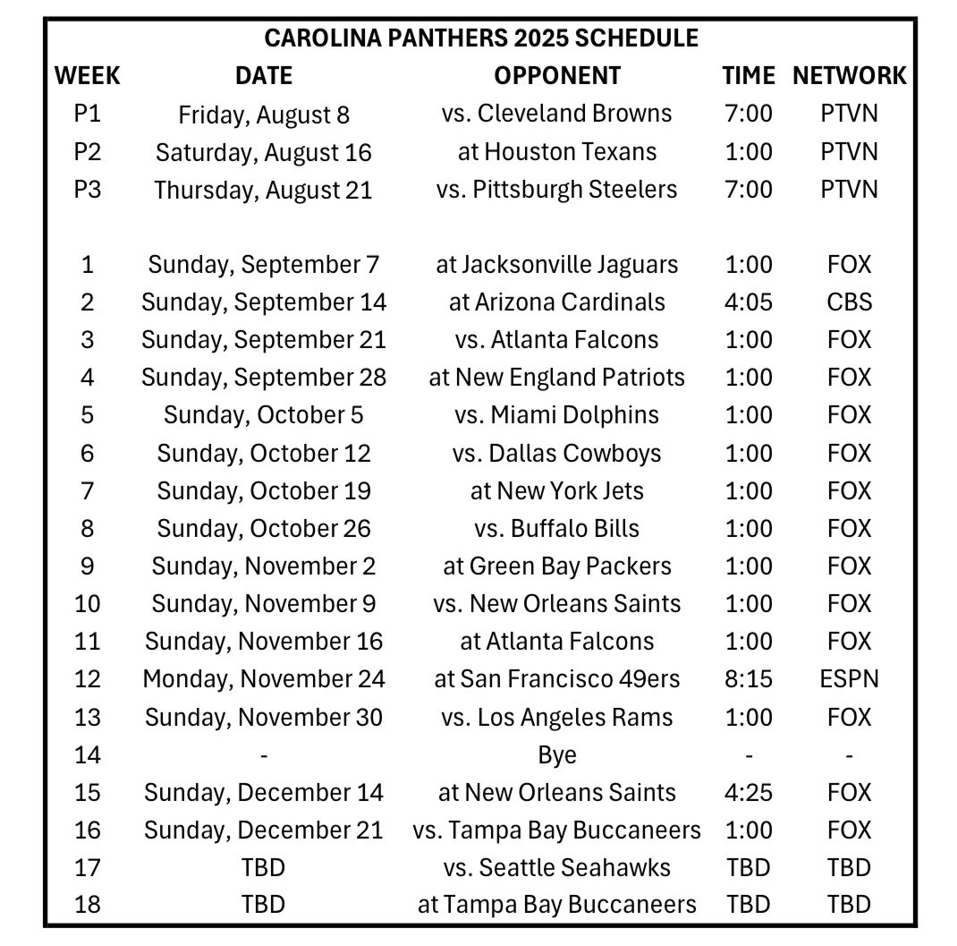 Carolina Panthers Schedule 2025 Printable