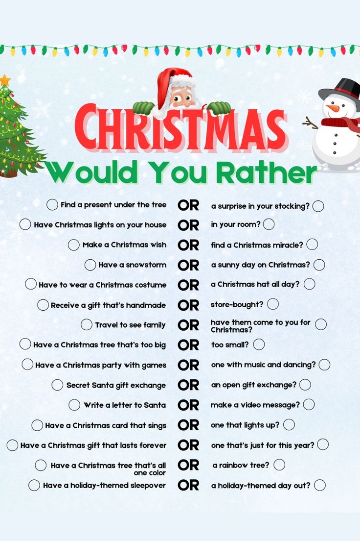 75 Christmas Would You Rather Questions Game For Kids Printable