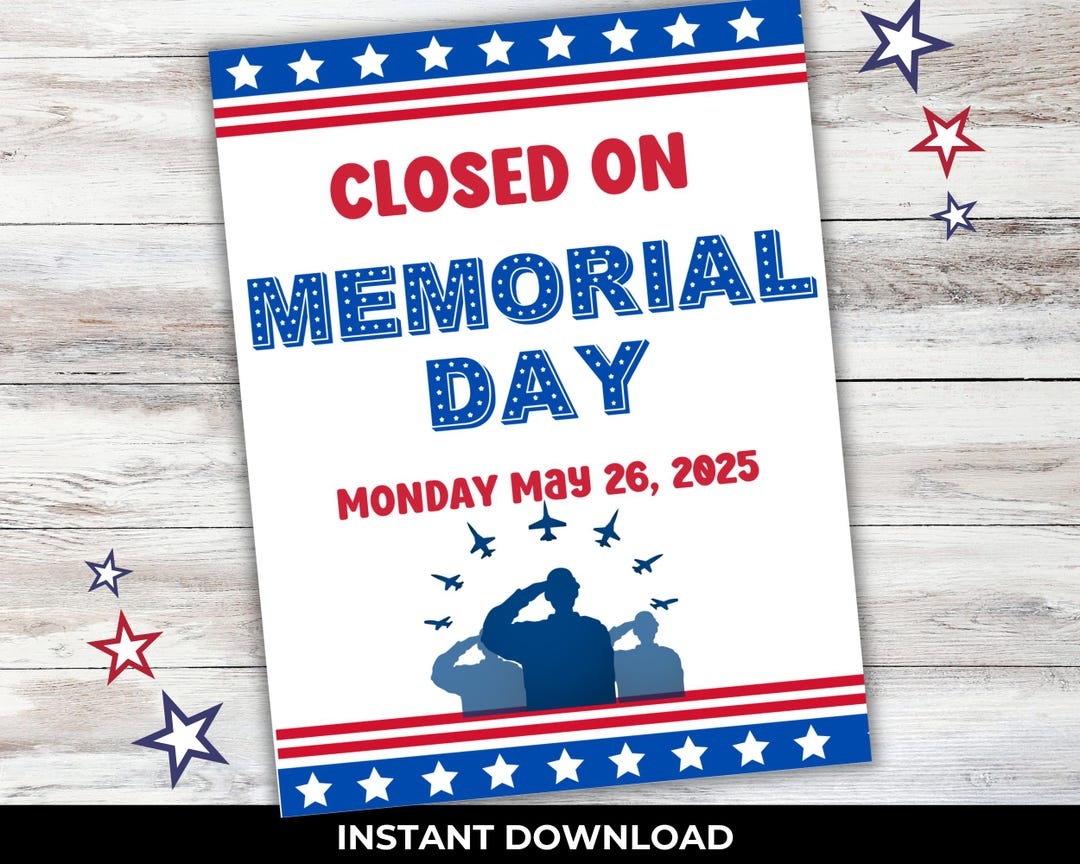 Closed For Memorial Day Printable Sign Instant Download Business Closure Sign Memorial Day Decor Memorial Day Closed Sign Etsy