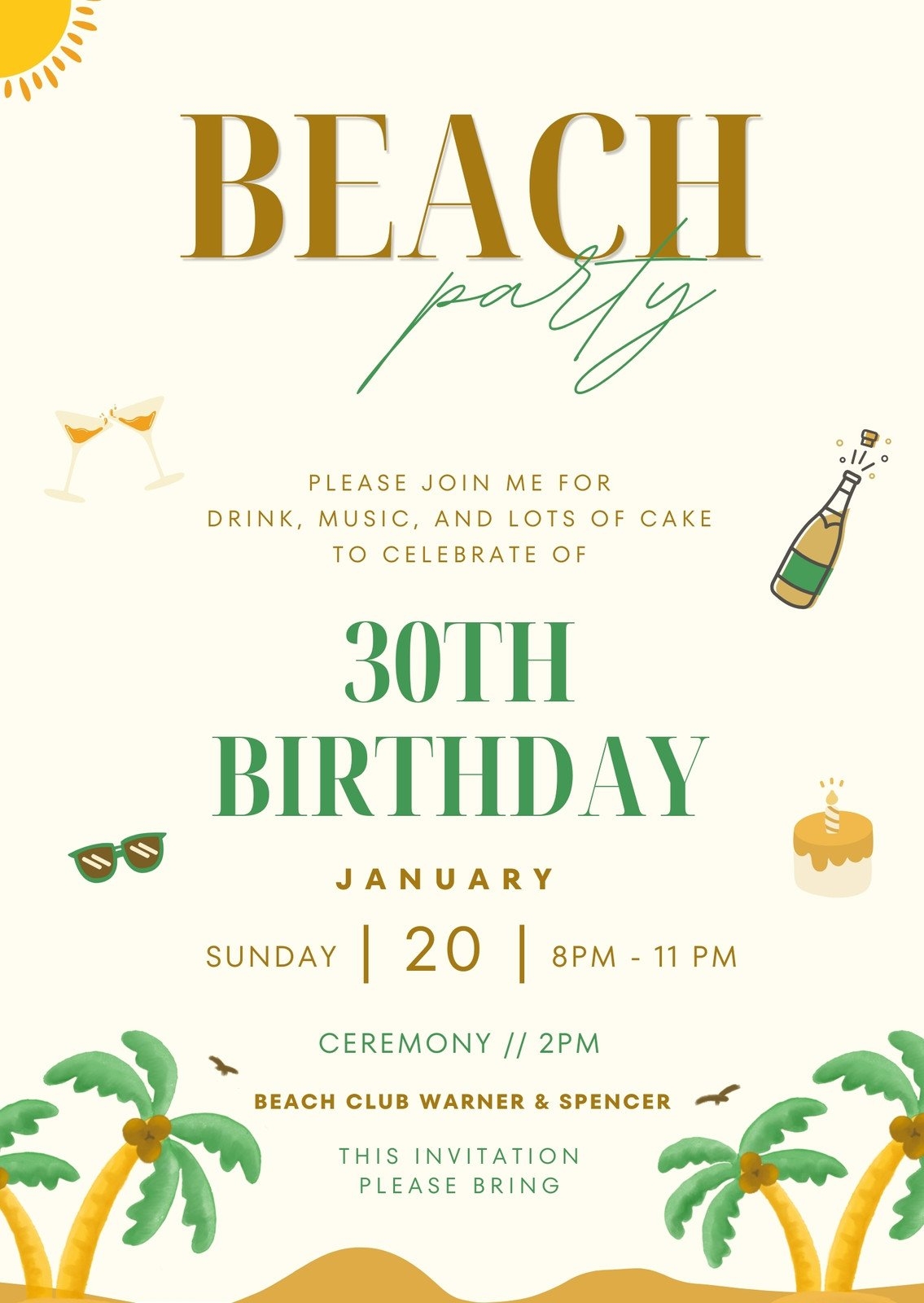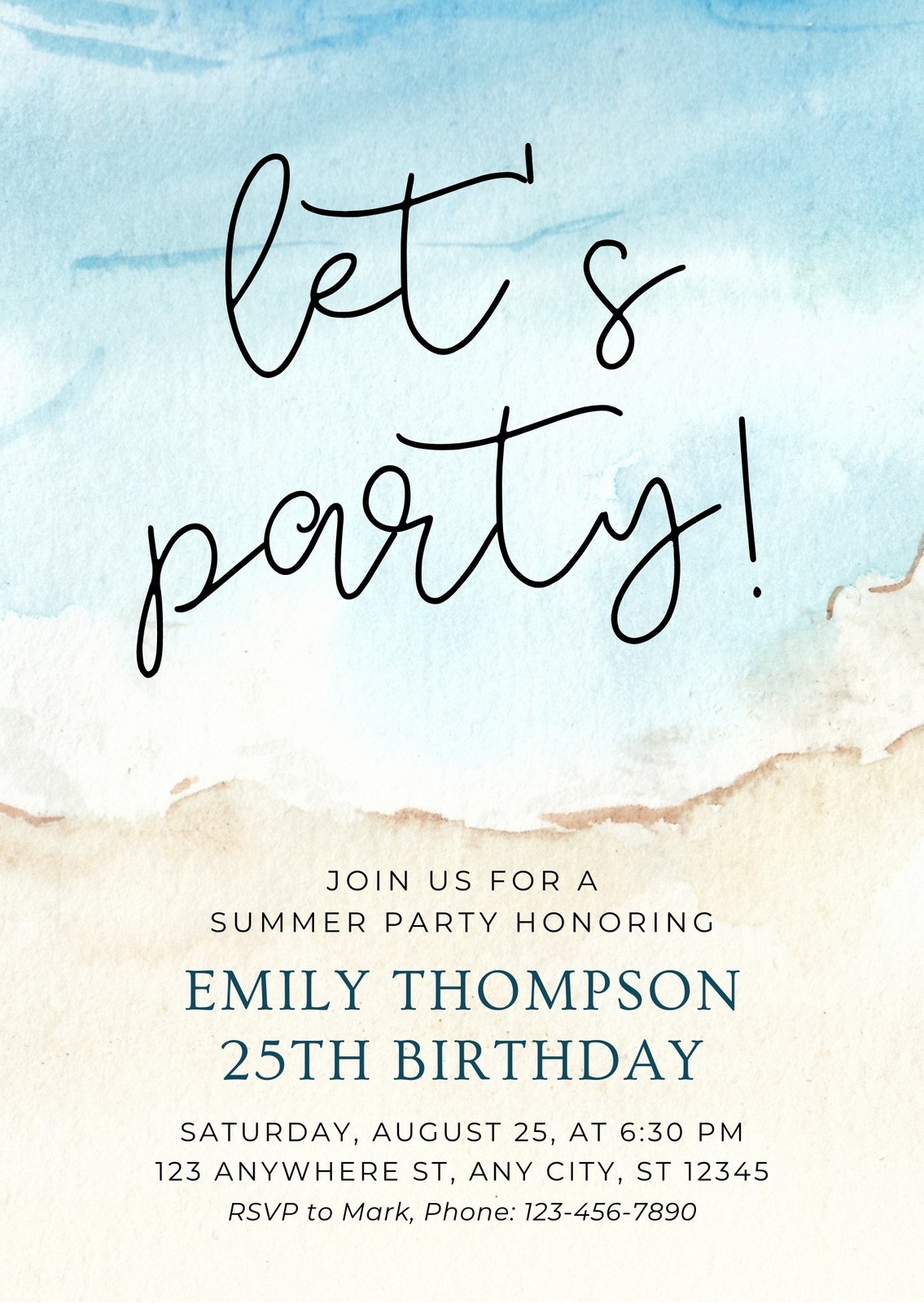 Don’t stress about the small details – let your creativity shine through with custom beach party invitations that are as unique as your event. Get started today and make a splash with invitations that will leave a lasting impression on your guests!