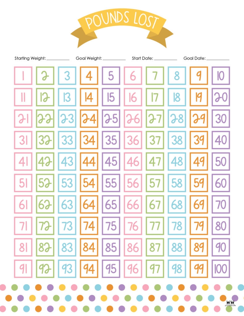 Free Printable 20 100 Pound Weight Loss Trackers