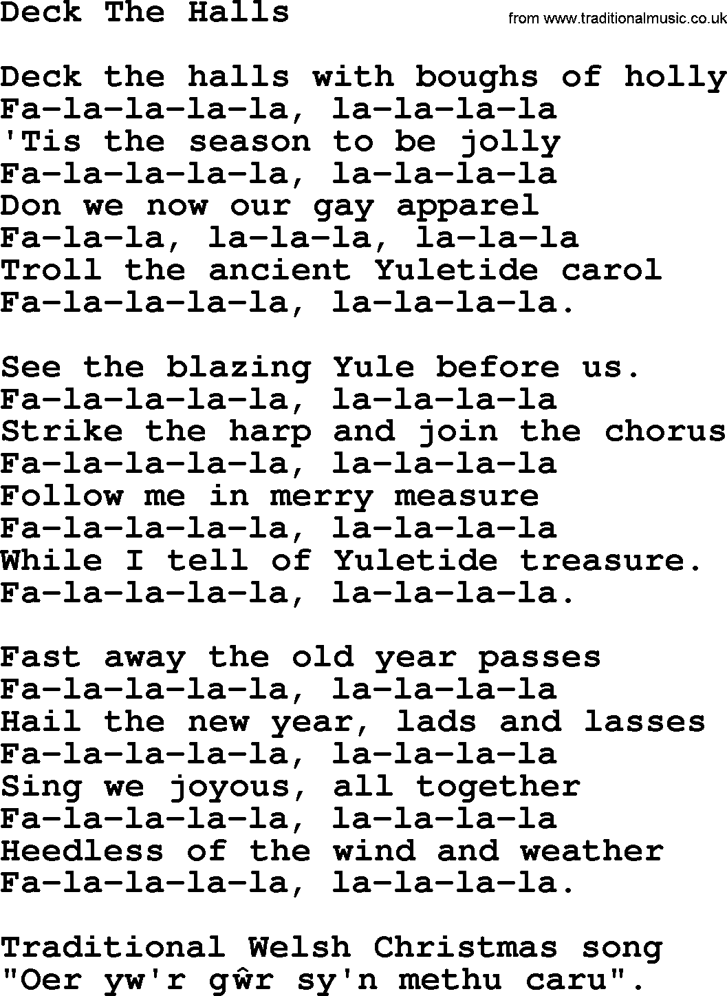 Deck The Halls Lyrics Printable