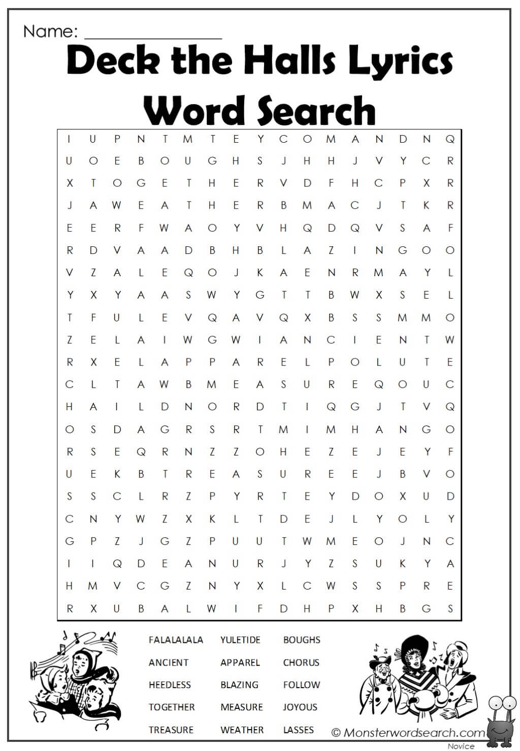 Deck The Halls Lyrics Word Search Monster Word Search