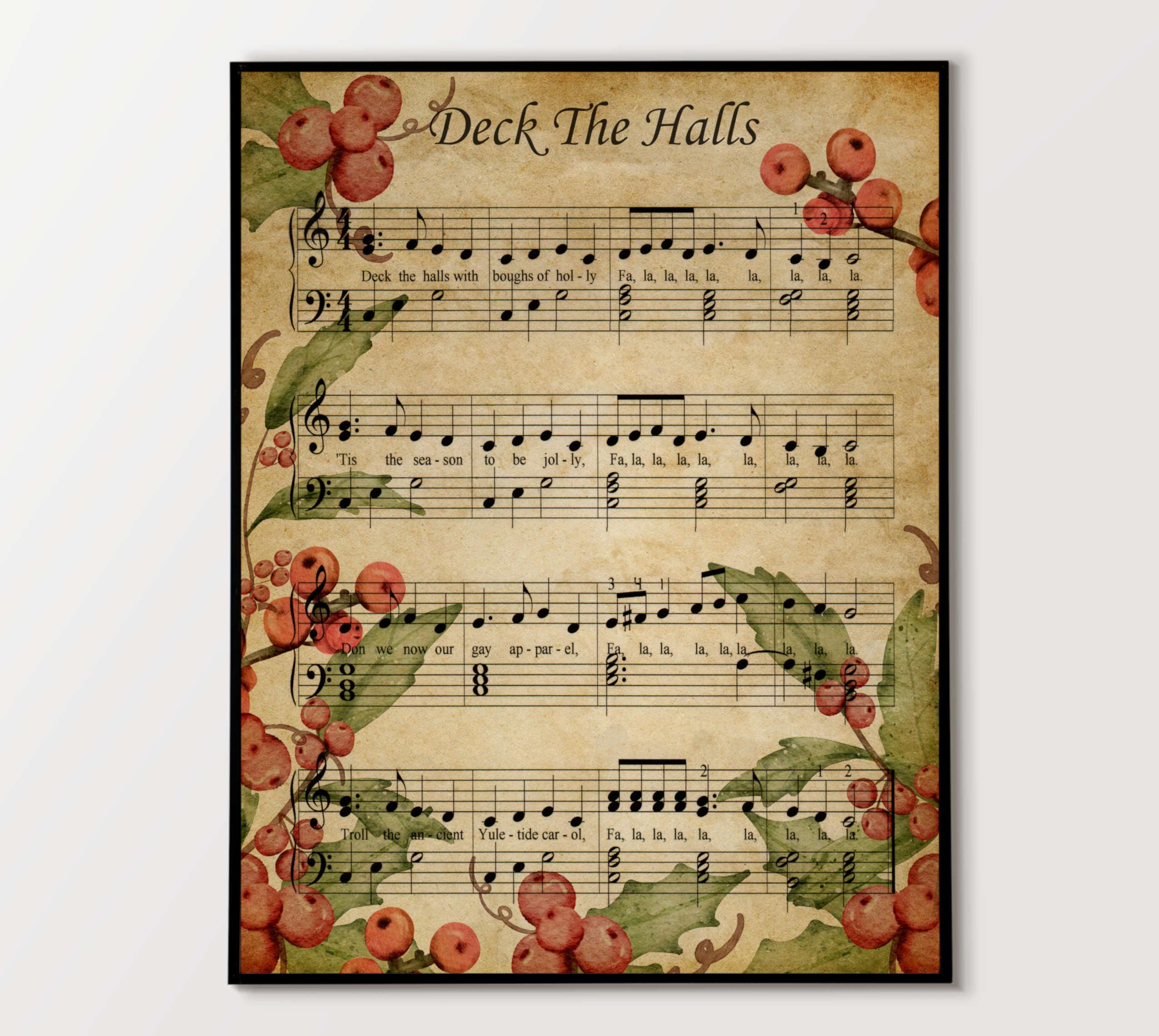 Deck The Hall Halls Printable Vintage Popular Christmas Carol Sheet Music Color Illustration White Background Etsy UK