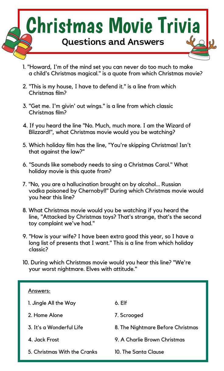 Fun Free Christmas Movie Trivia Printable Xmas Quiz