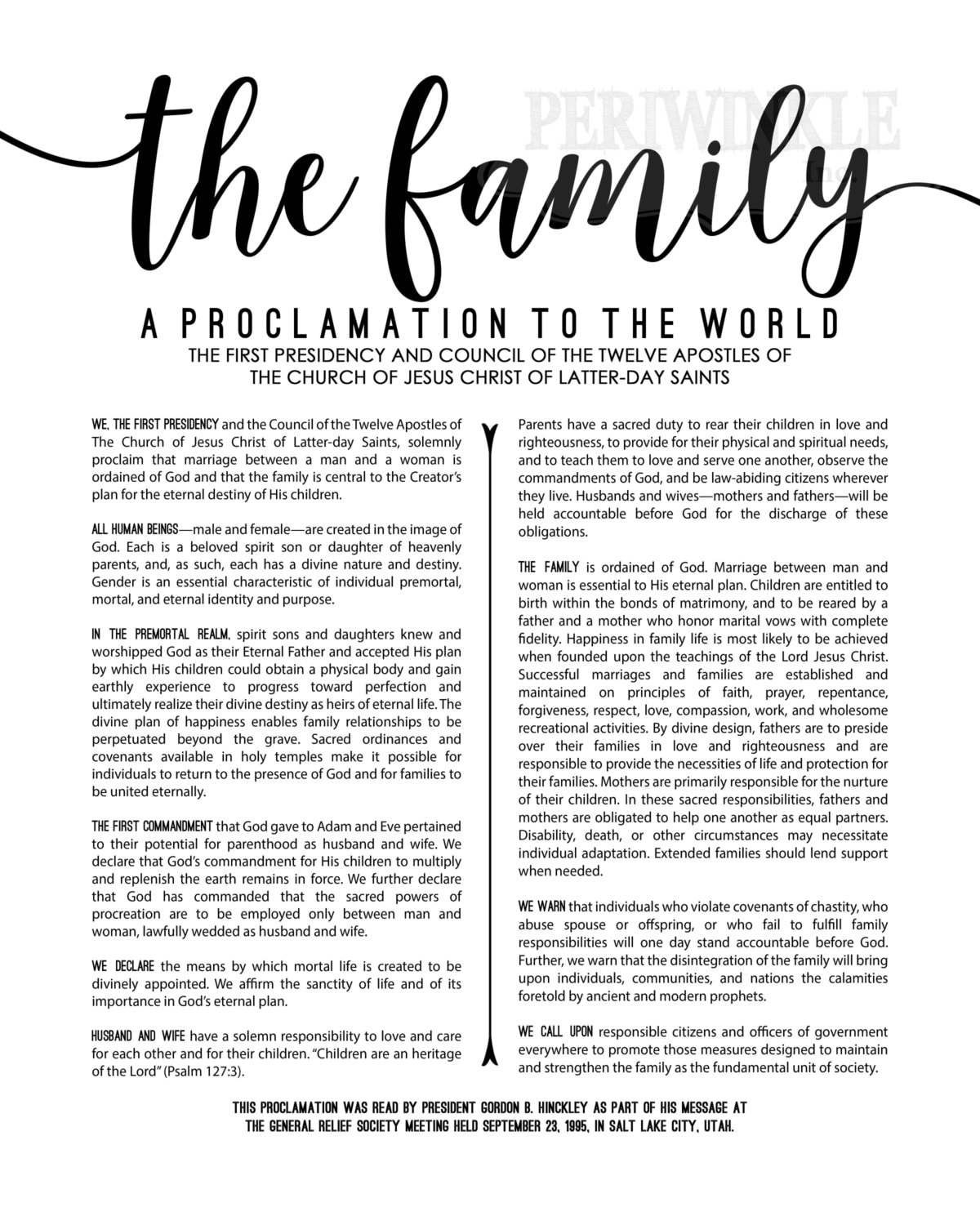 LDS Family Proclamation printable multiple Size Included instant Downloads black Text digital Files lds Art lds Poster Printables mormon Etsy