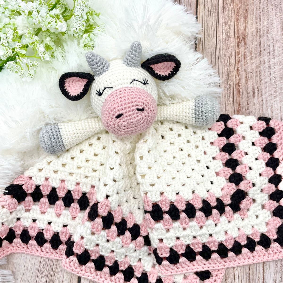 Free Cow Lovey Crochet Pattern Granny Square Blanket Cuddly Stitches Craft