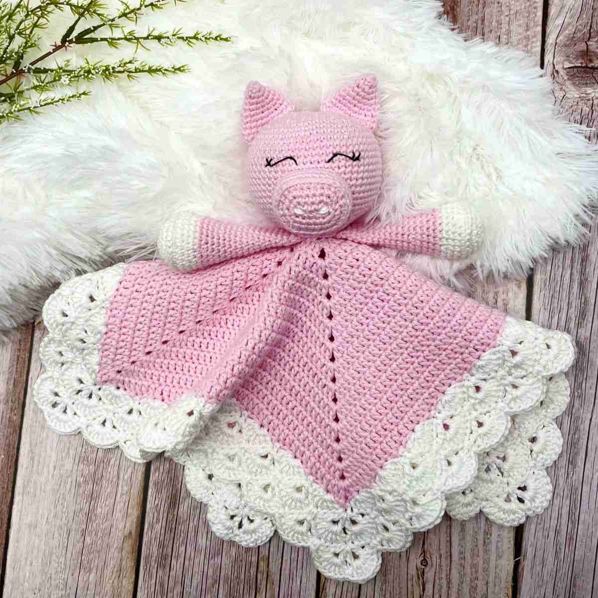 Free Pig Crochet Lovey Pattern Shell Border Blanket Cuddly Stitches Craft