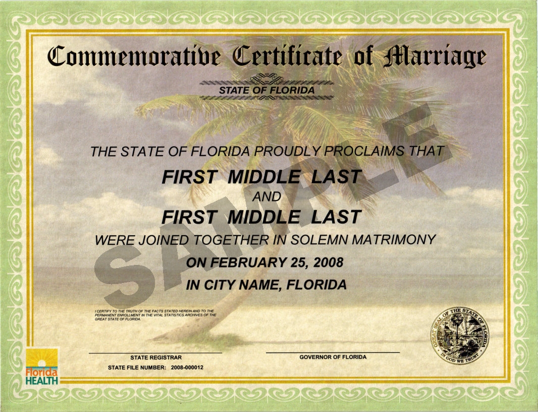 Commemorative Marriage Certificates Florida Department Of Health