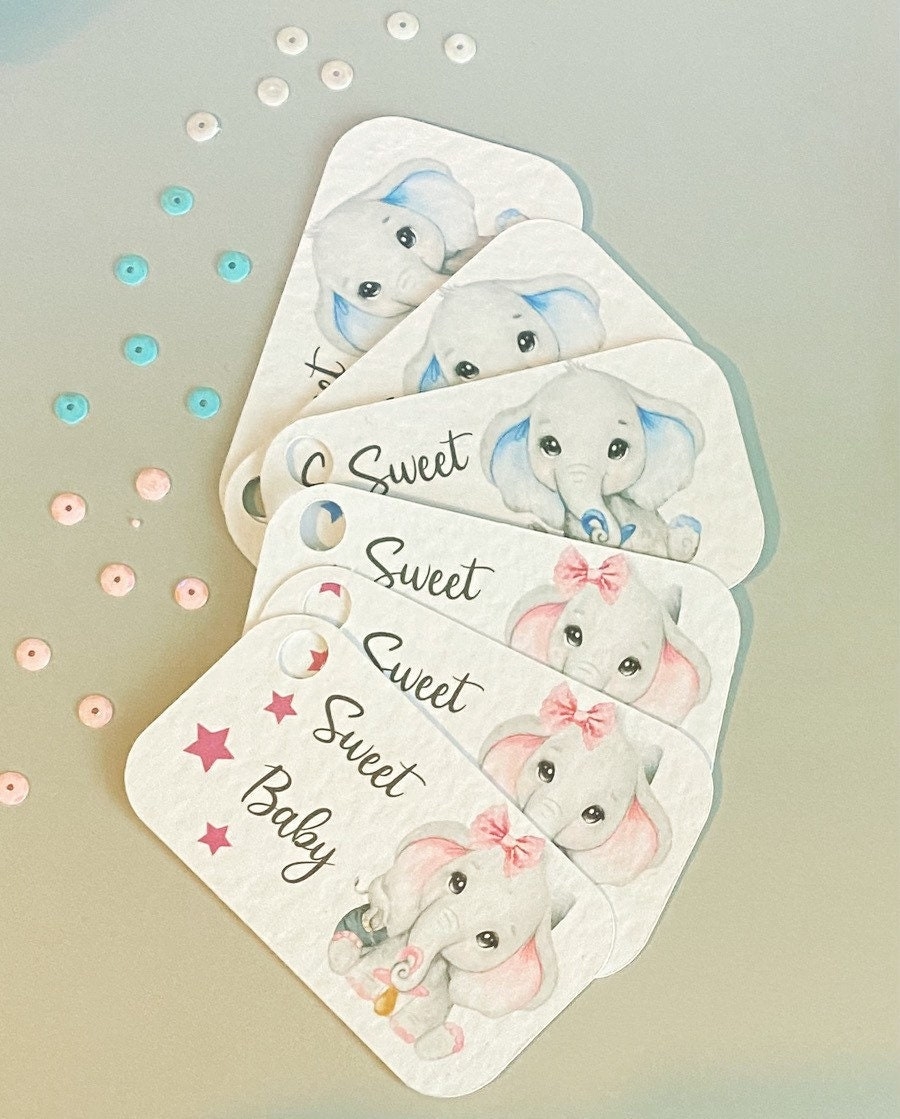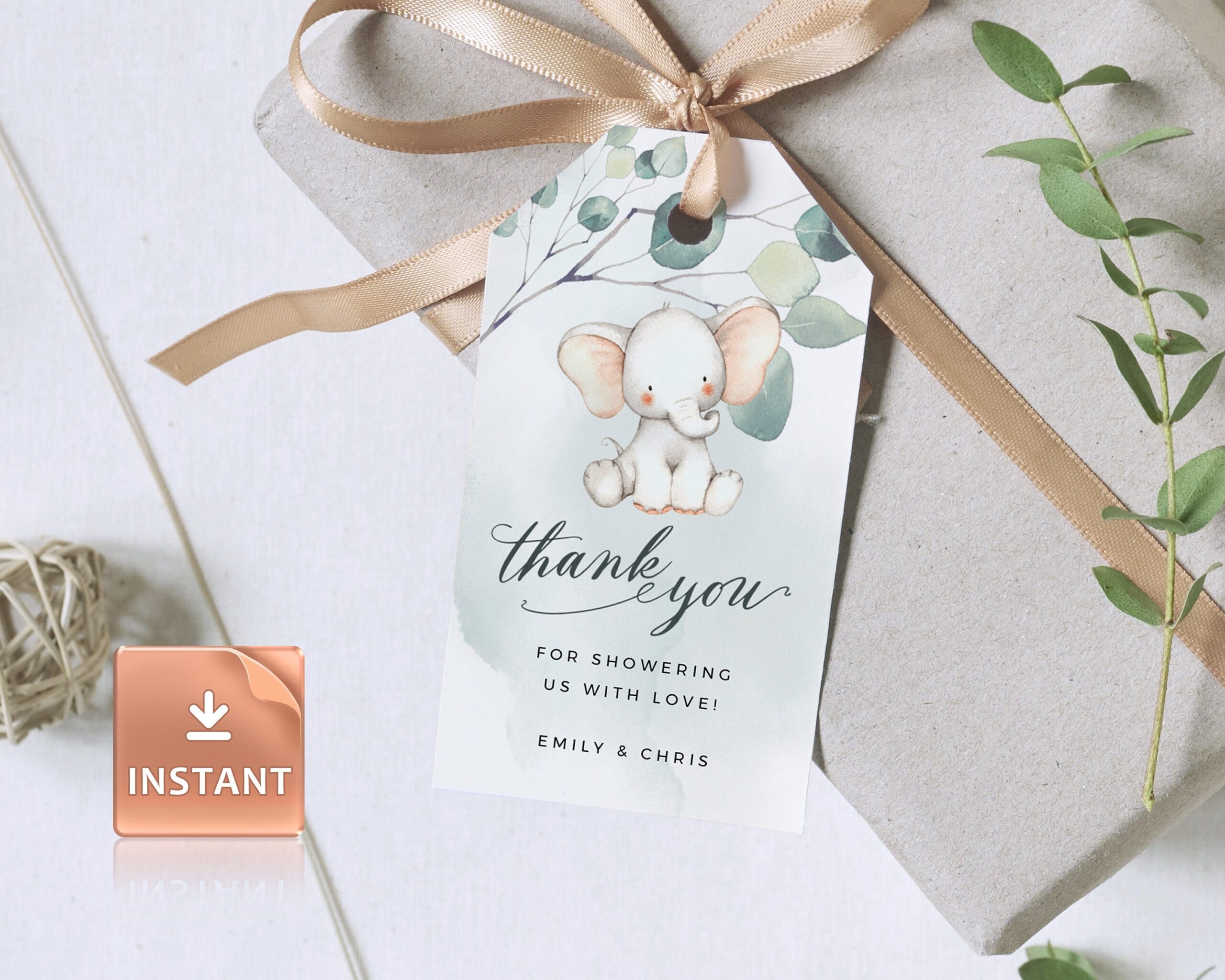 These printable tags are versatile and can be used for a variety of baby shower favors such as candles, soaps, candies, or succulents. The elephant design adds a sweet and whimsical touch to any gift, making it a memorable token for your guests to take home.