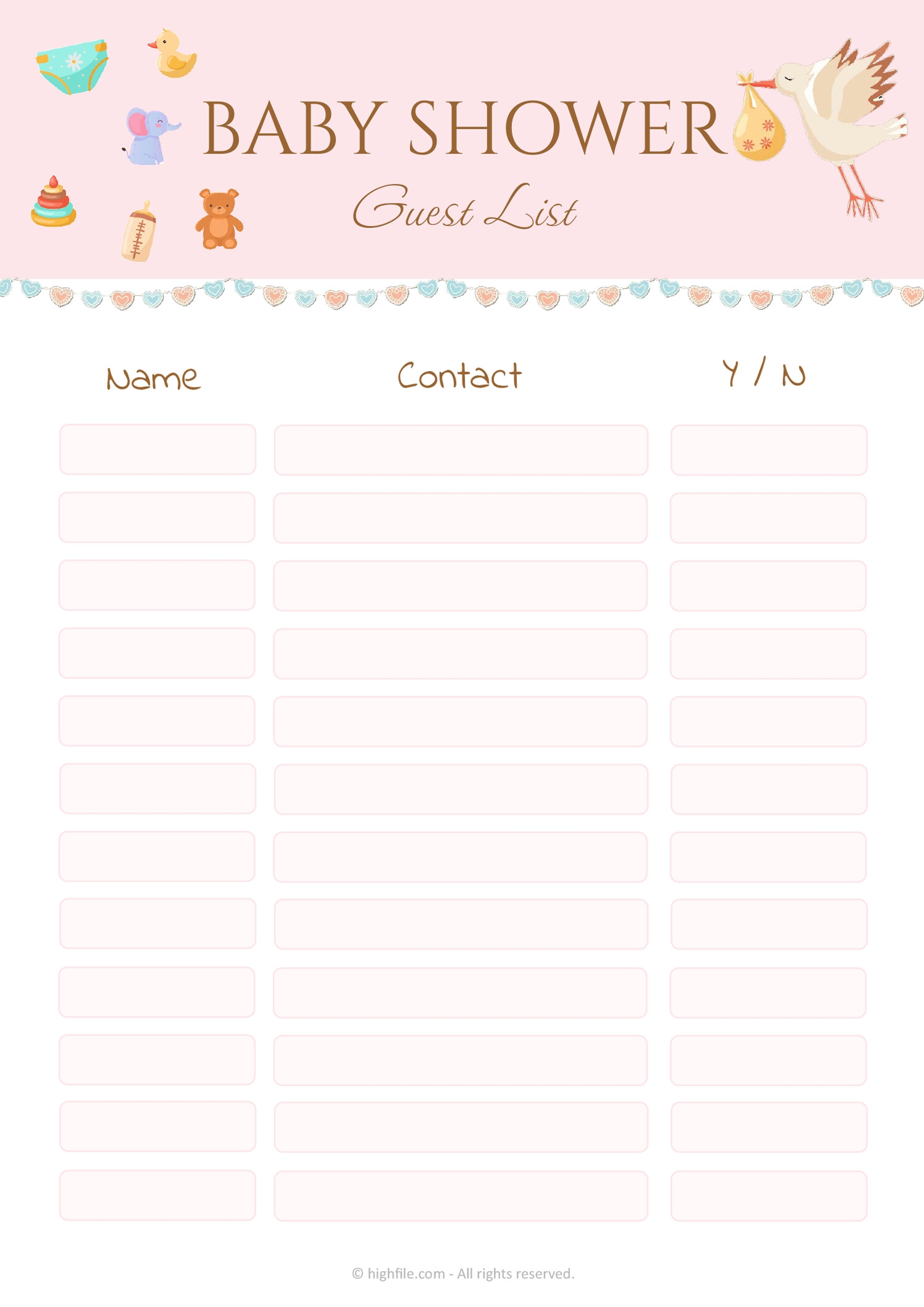 Baby Shower Guest List Template Word Highfile