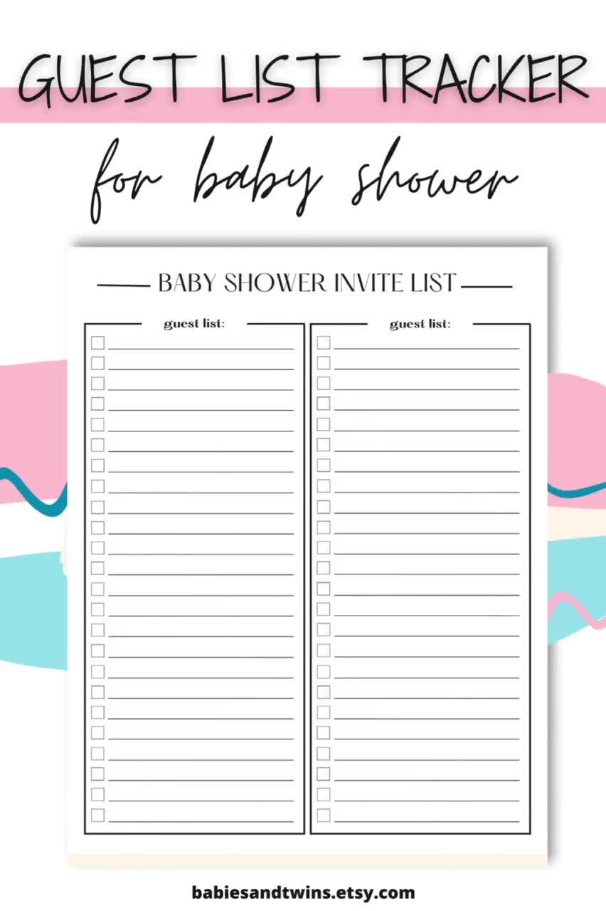 Guest List Tracker For Baby Shower Printable Baby Shower Guest List Planner PDF Digital Download Baby Shower Invite Checklist Template Etsy
