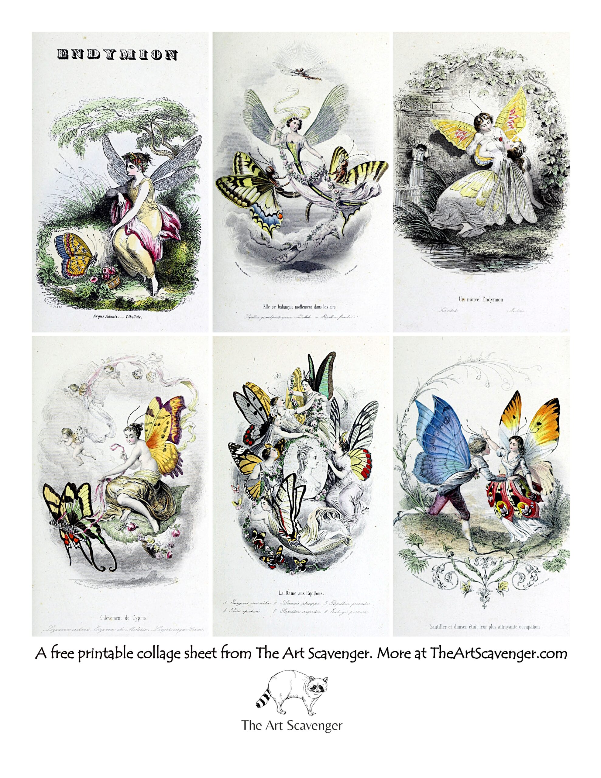 Free Printable French Butterfly Fairies Collage Sheets The Art Scavenger