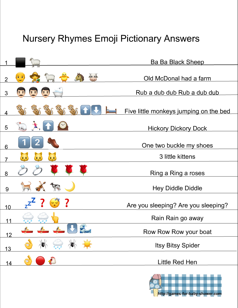 Free Printable Nursery Rhymes Emoji Pictionary Quiz