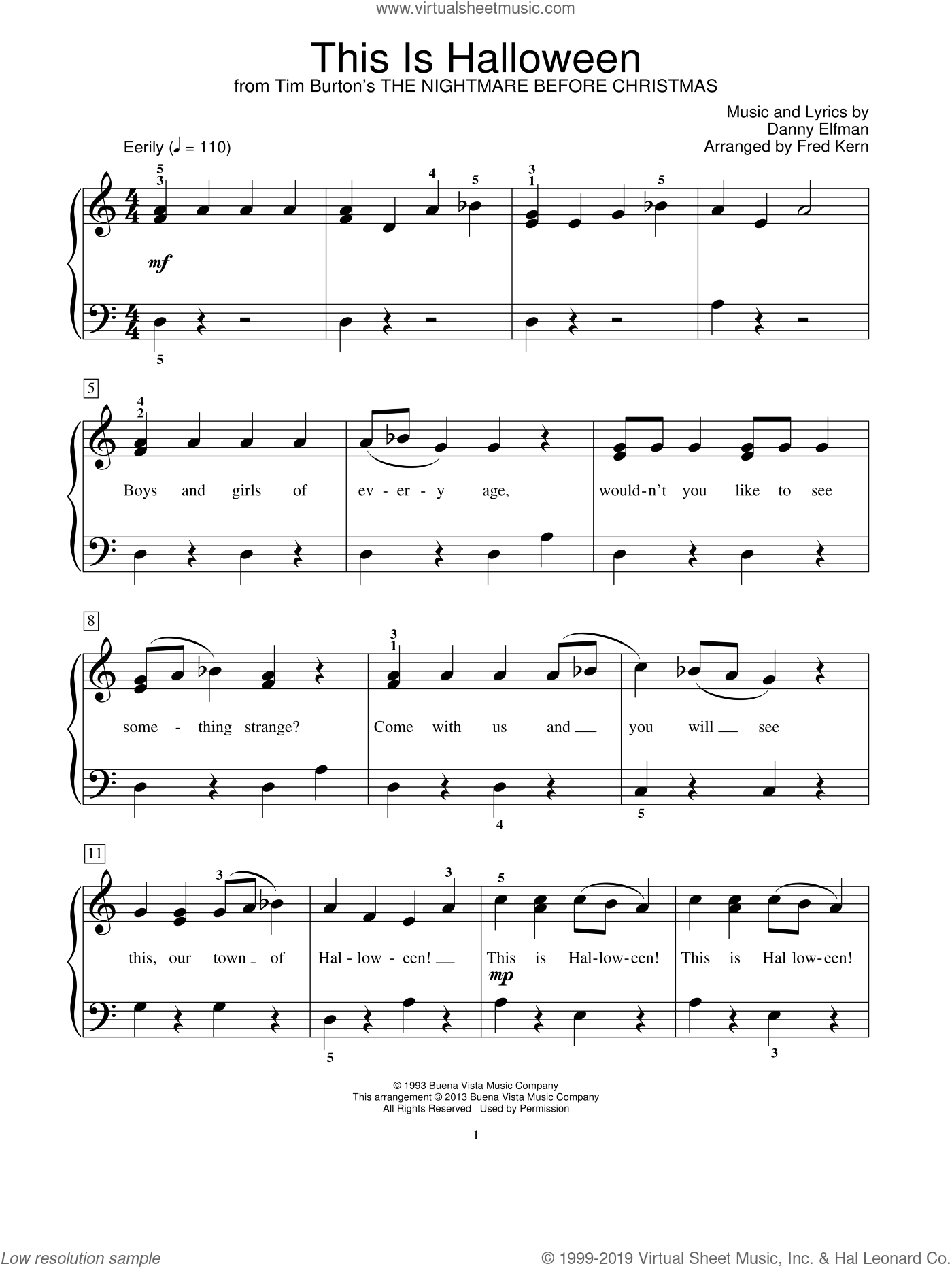 This Is Halloween from The Nightmare Before Christmas Sheet Music beginner For Piano Solo elementary