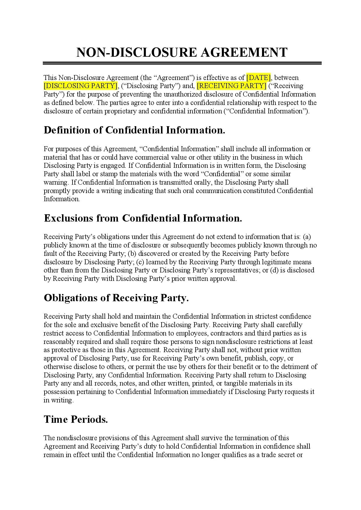 Free Non Disclosure Agreement Template Document