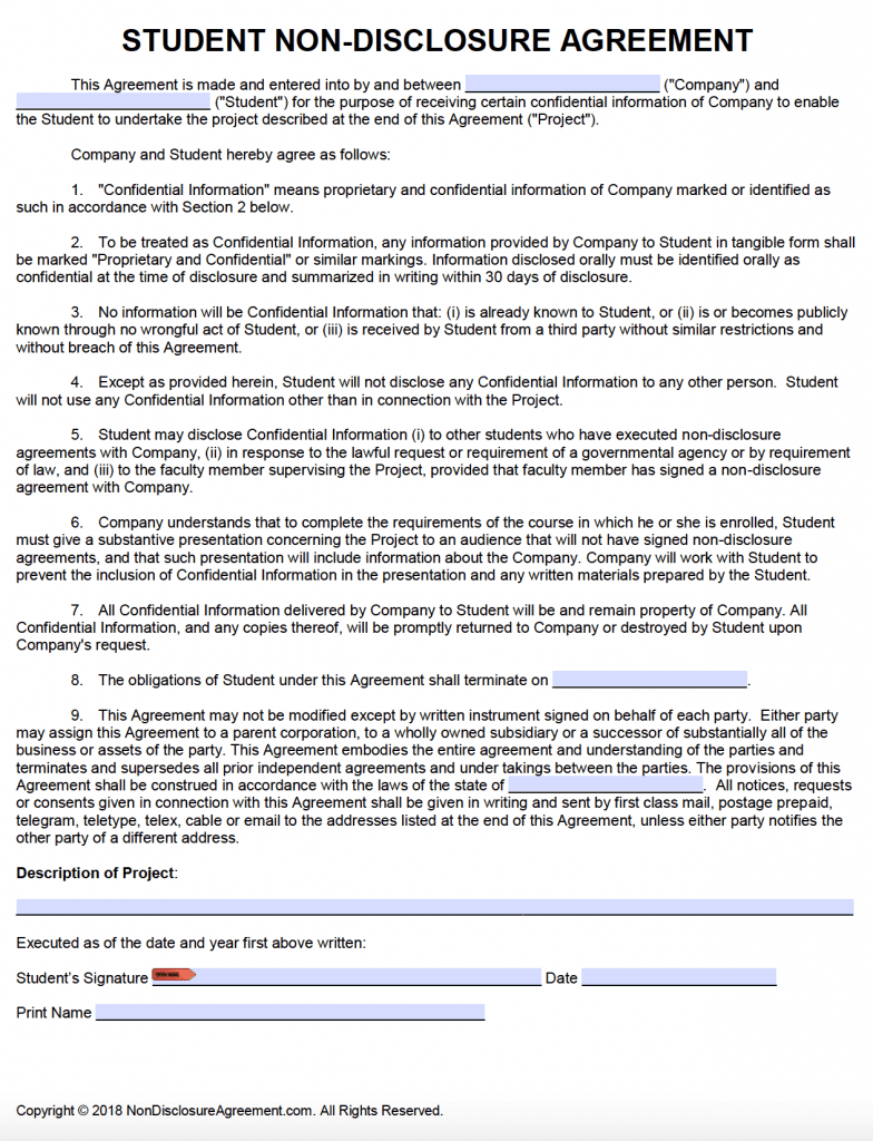 Free Printable Non-Disclosure Agreement Form