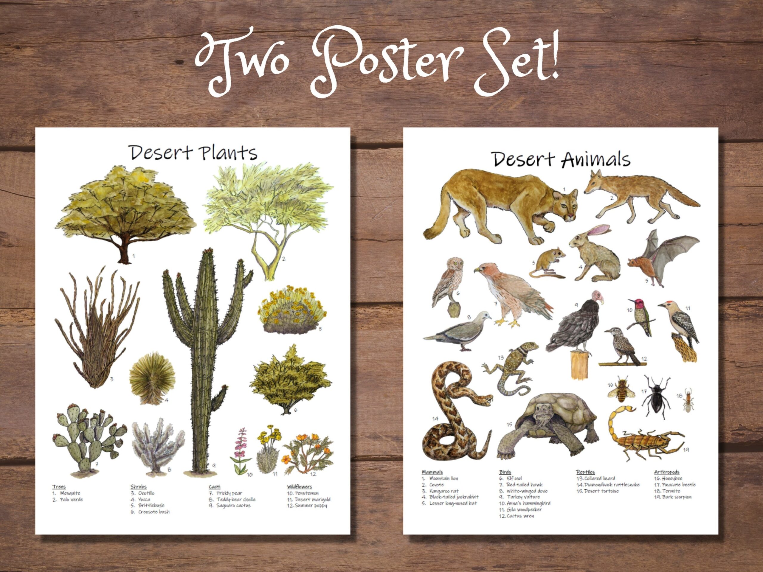 Desert Animals And Desert Plants Classroom Poster Set Homeschool Decor Nature Study Sonoran Desert Saguaro National Park Flora Fauna Etsy