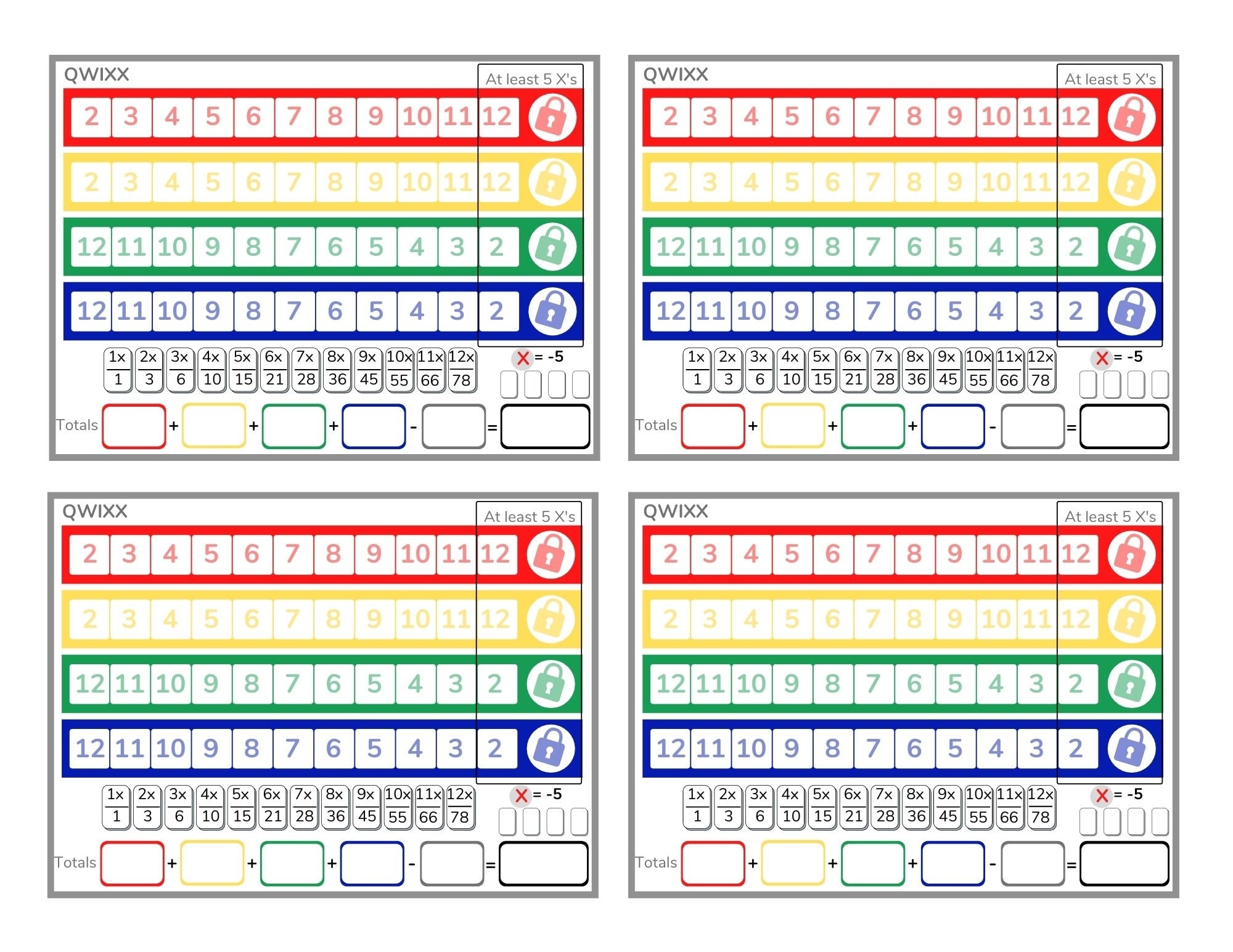 Qwixx Score Sheets Printable