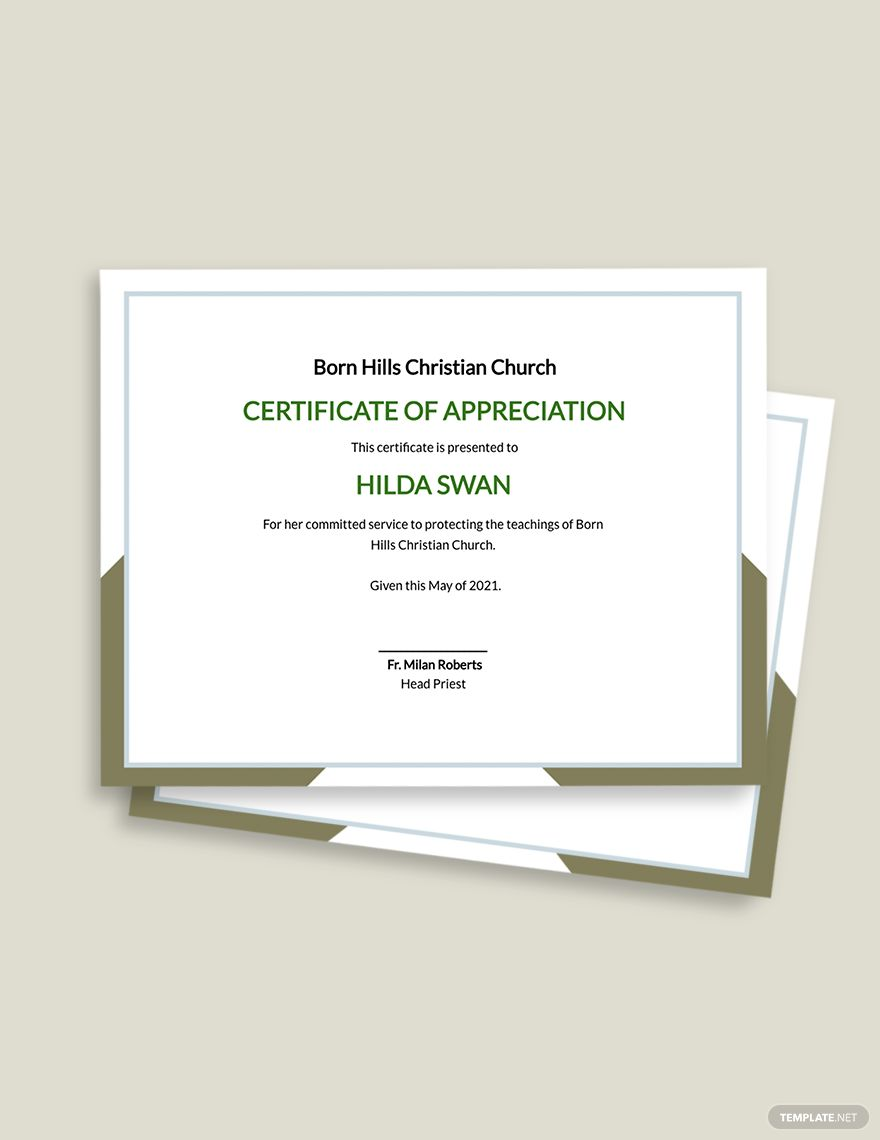 Church Certificate Of Appreciation Template In Illustrator Publisher Pages InDesign Word PSD Outlook Google Docs Download Template