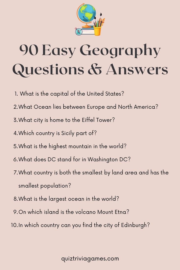 So why not give geography trivia questions and answers printable a try? You never know what fascinating facts you might discover or how much fun you’ll have along the way. Challenge yourself, impress your friends, and expand your knowledge of the world with these engaging and interactive printable trivia questions.