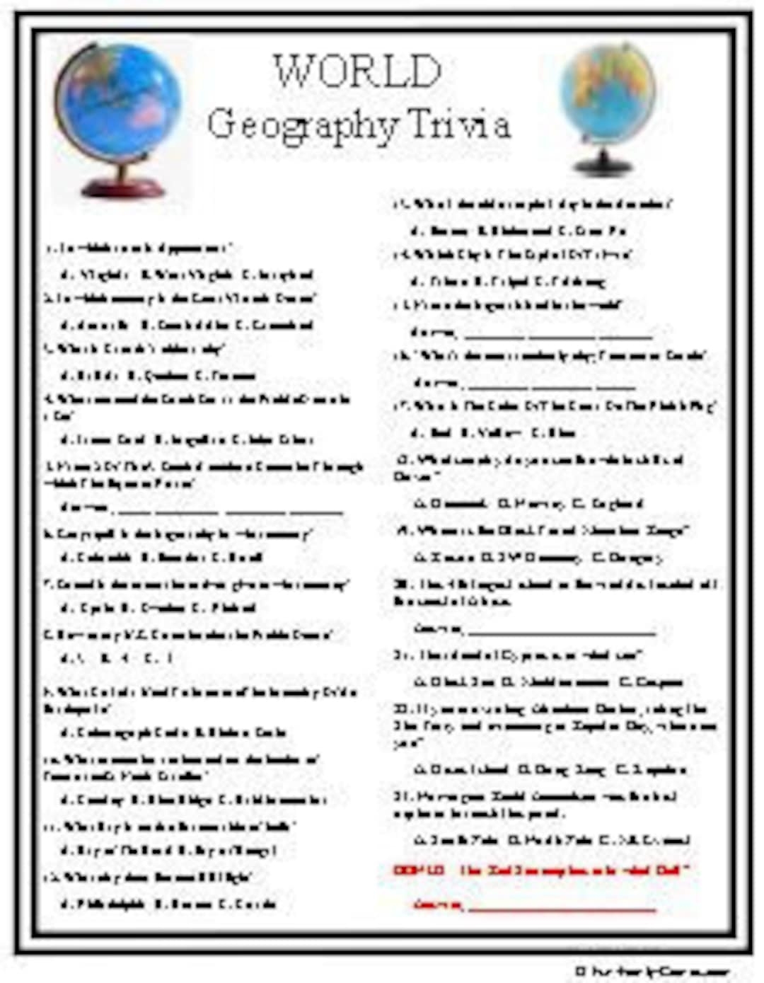 Geography Trivia fun Quiz printable Trivia classroom Trivia Etsy