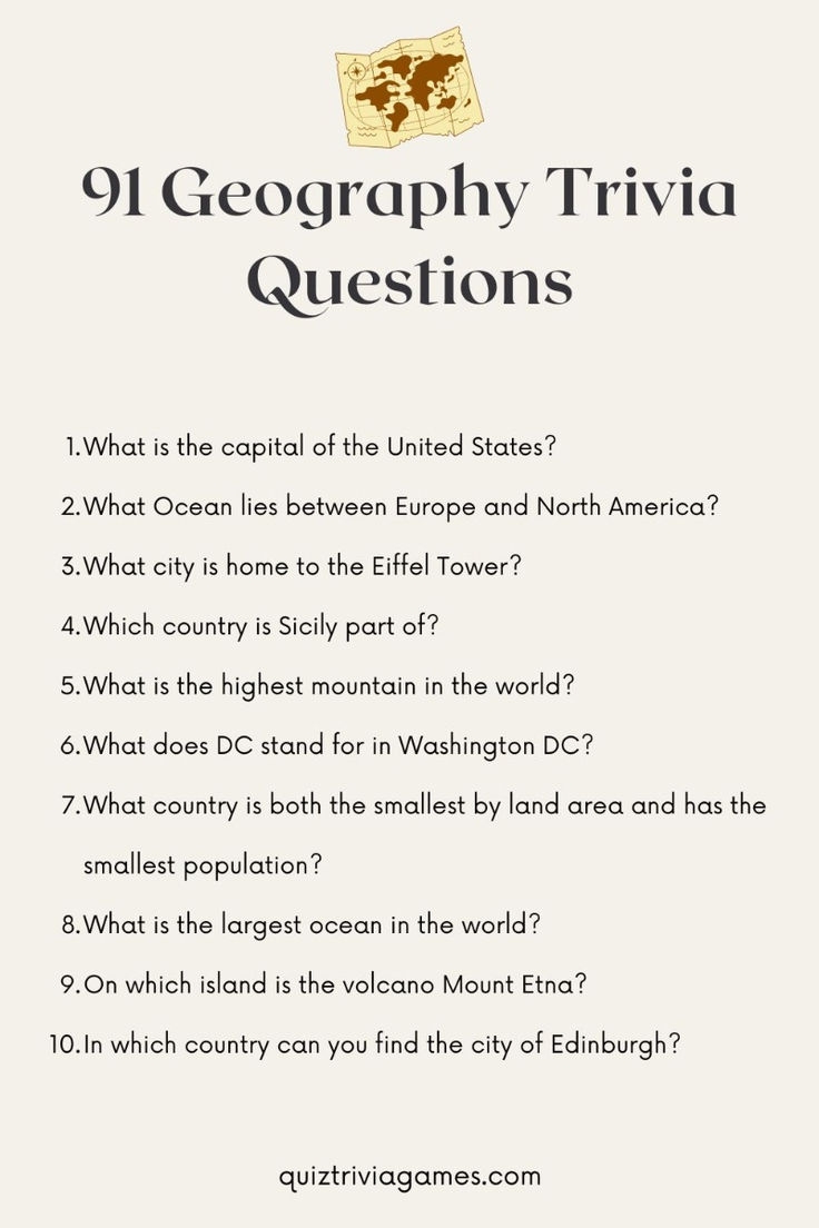 Geography Trivia Questions And Answers Printable