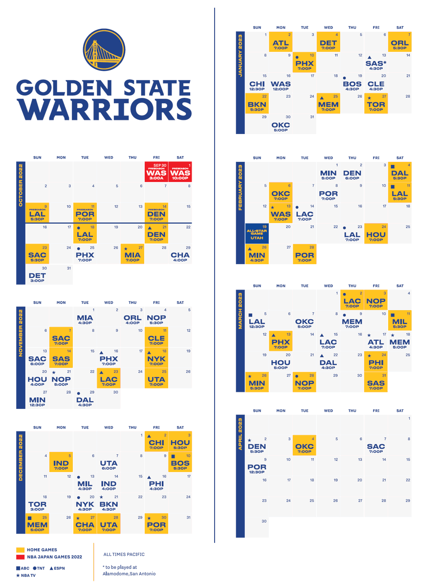 Warriors PR P X Golden State Warriors 2022 23 Regular Season Schedule Https t co r3xnDILHWU X