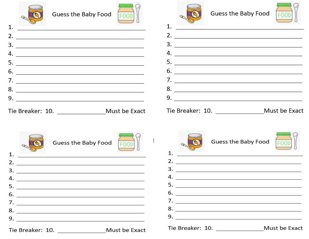 Guess The Baby Food Game Instructions Free Printable