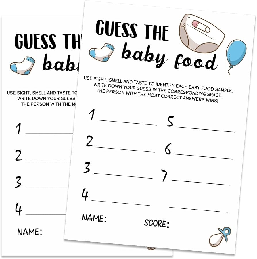 To play Guess The Baby Food Printable, simply set up a station with different jars of baby food and numbered labels. Guests can sample each jar and write down their guesses on a provided sheet. The person with the most correct answers wins a prize!