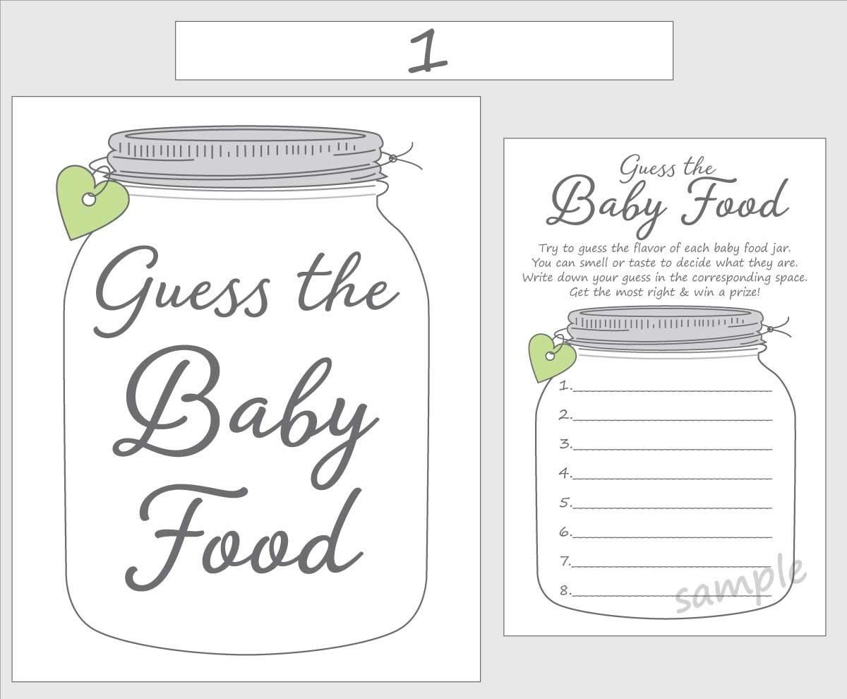 Guess The Baby Food Printable Baby Shower Game Mint Green Gender Neutral Mason Jar Etsy