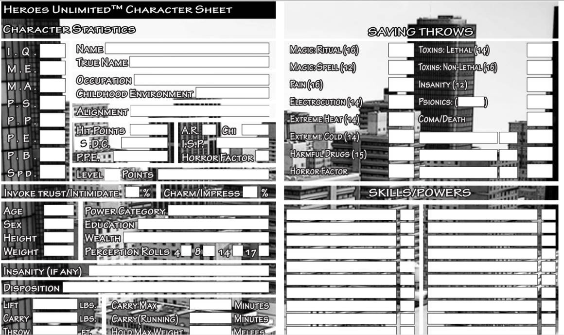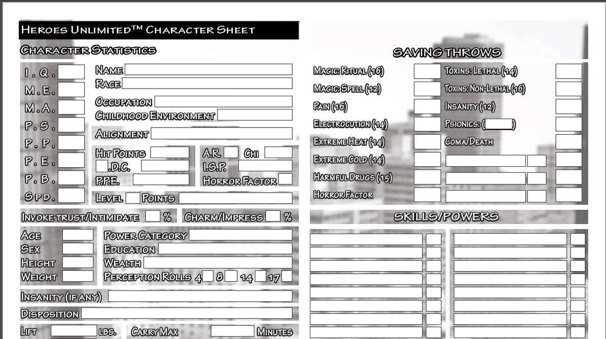 Heroes Unlimited Fillable Character Sheet By MADMANMIKE On DeviantArt