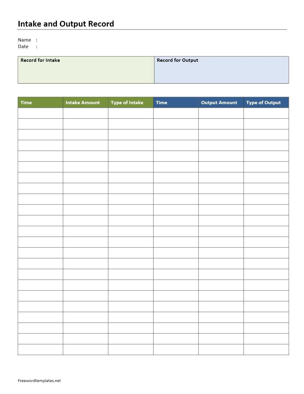 Intake And Output Record