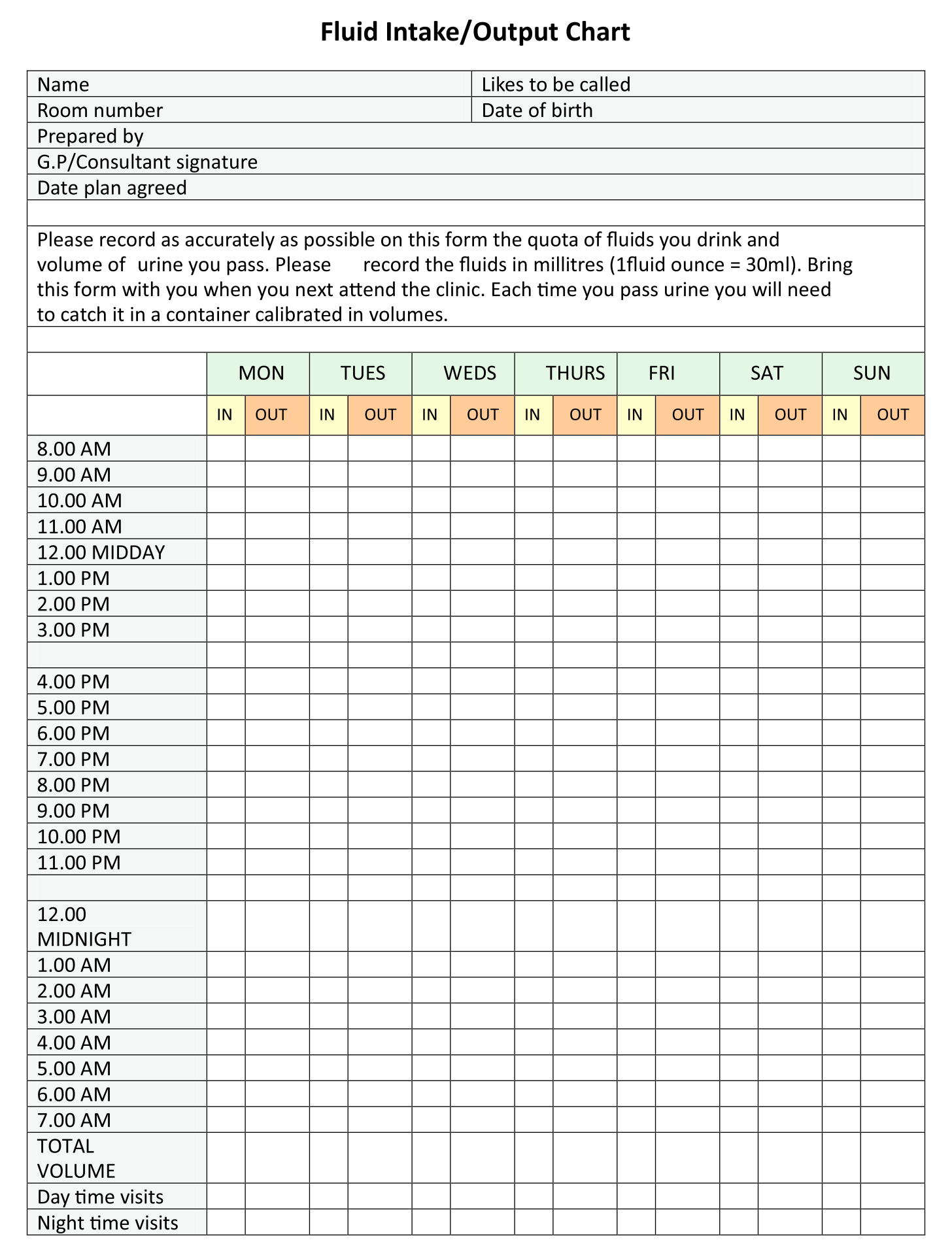 Intake And Output Chart Printable