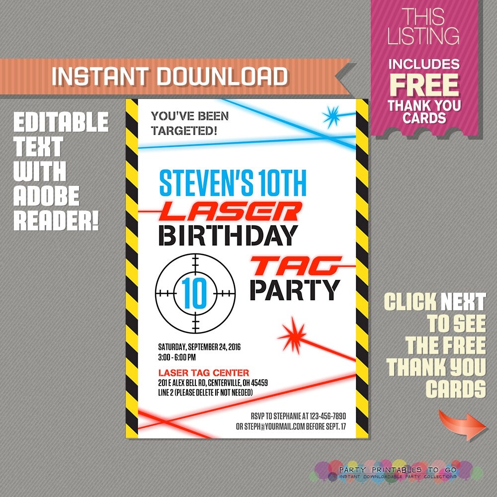 Laser Tag Invitation With FREE Thank You Card Laser Tag Party Instant Download Edit And Print At Home With Adobe Reader Etsy UK